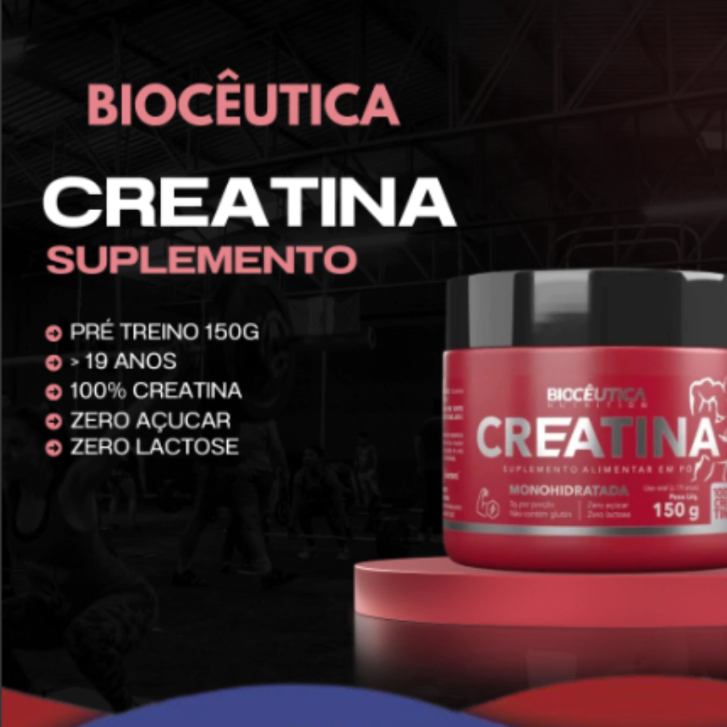 Creatina Monohidratada 150g – Biocêutica A Creatina Suplemento Alimentar em Pó 150g da Biocêutica é a escolha ideal para quem busca maximizar o desempenho físico e acelerar a recuperação muscular. Composta por creatina monohidratada de alta qualidade, foi desenvolvida para atender às necessidades de atletas e praticantes de atividades físicas a partir de 19 anos.